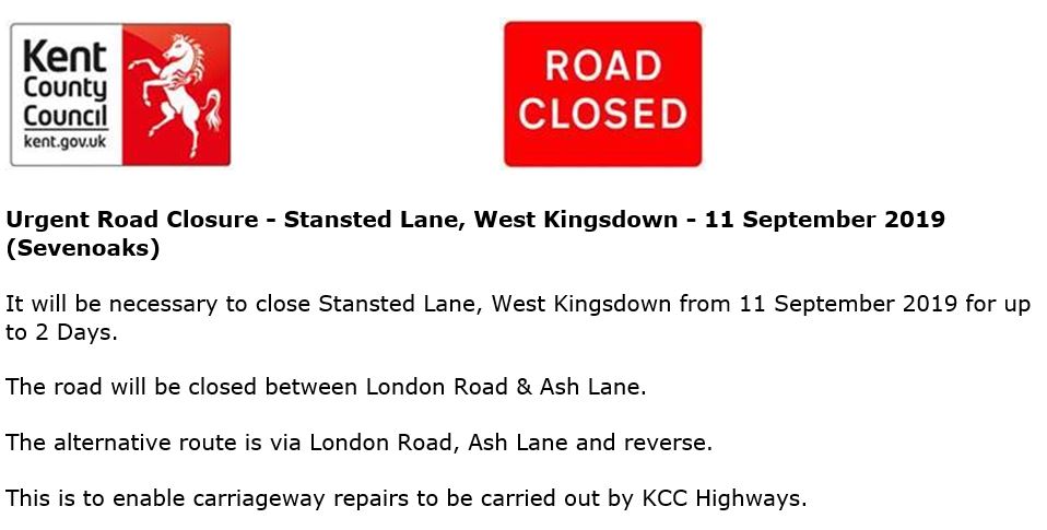 Road Closure – 11 Sept 2019