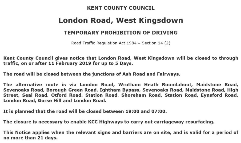 Road Closure – London Road (Feb 2019)